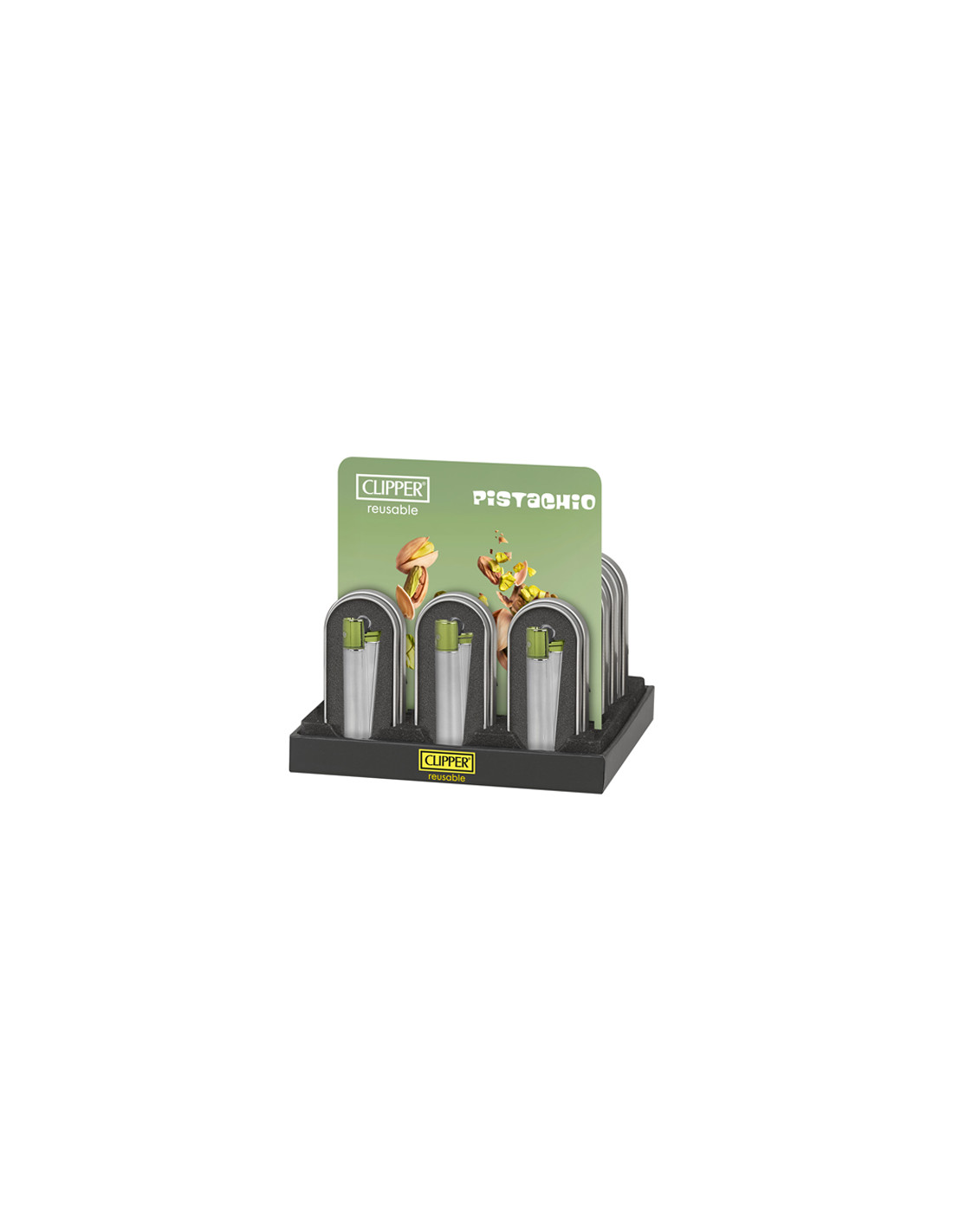 ENCENDEDOR CLIPPER METÁLICO SILVER PISTACHO 12 UDS