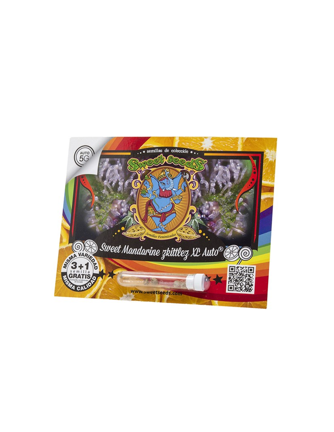 Autofloreciente de 5ª Generación, resultado del cruce entre un clon élite de Zkittlez, con su potente aroma Sour Diesel cítrico, y nuestra Sweet Mimosa XL Auto® (SWS94), que también presenta tonos cítricos entre naranja y mandarina.
