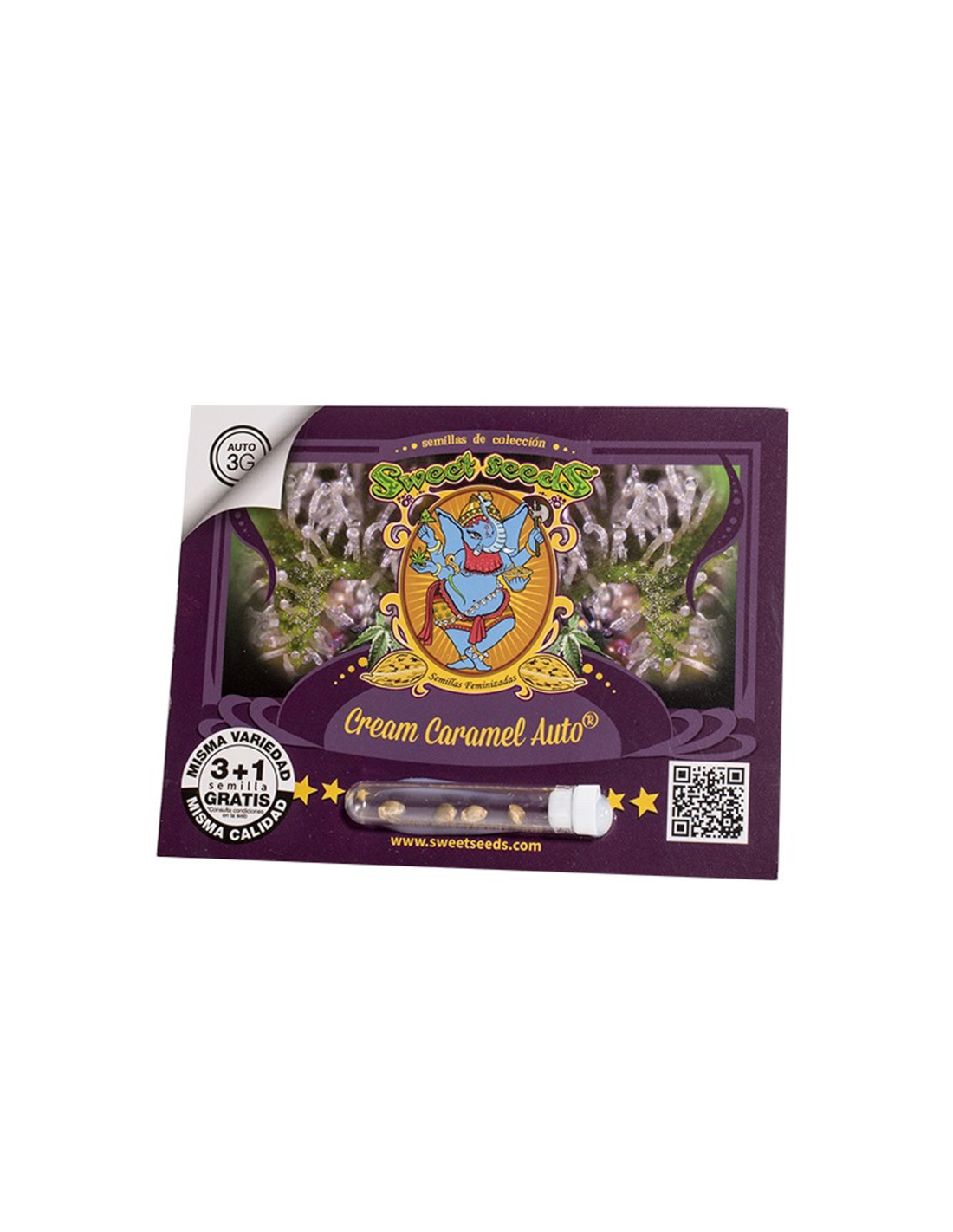 Cream Caramel Auto® (SWS22) es una autofloreciente de tercera generación derivada del cruce entre Cream Caramel® y cepas automáticas de segunda generación. Esta variedad combina vigor híbrido, floración rápida y una estructura compacta con ramas laterales robustas. Sus cogollos densos están cubiertos de resina aromática con un perfil dulce, almizclado y terroso, acompañado de un potente efecto. Cream Caramel Auto® marcó un antes y un después en la evolución de las autoflorecientes.