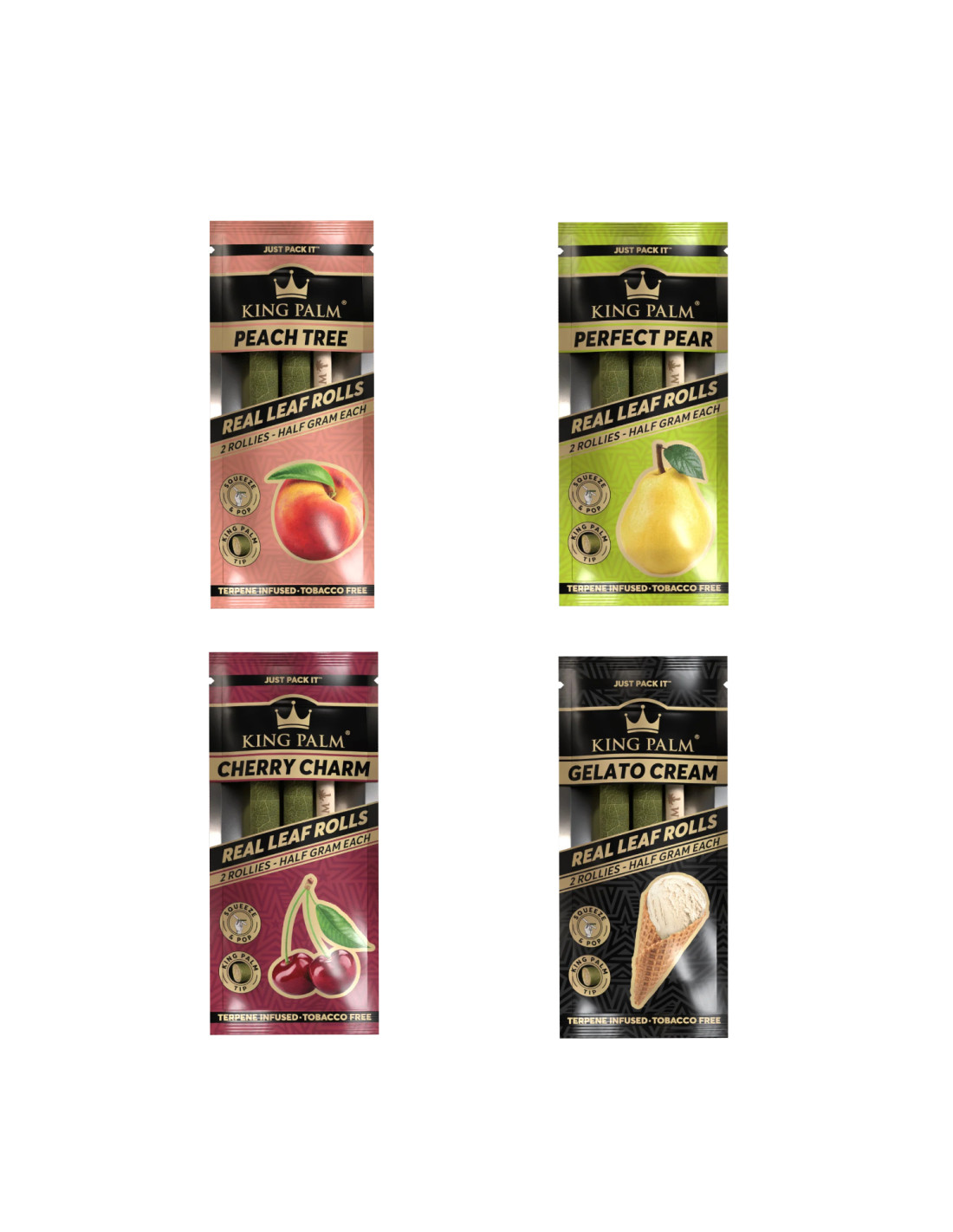 Disfruta una experiencia auténtica y aromática con los blunts rollie de hoja de palma en sabores surtidos: Cherry Charm, Perfect Pear, Gelato Cream y Peach Tree. Elaborados con materiales 100% naturales, sin tabaco ni nicotina, ofrecen una alternativa premium, práctica y lista para usar.