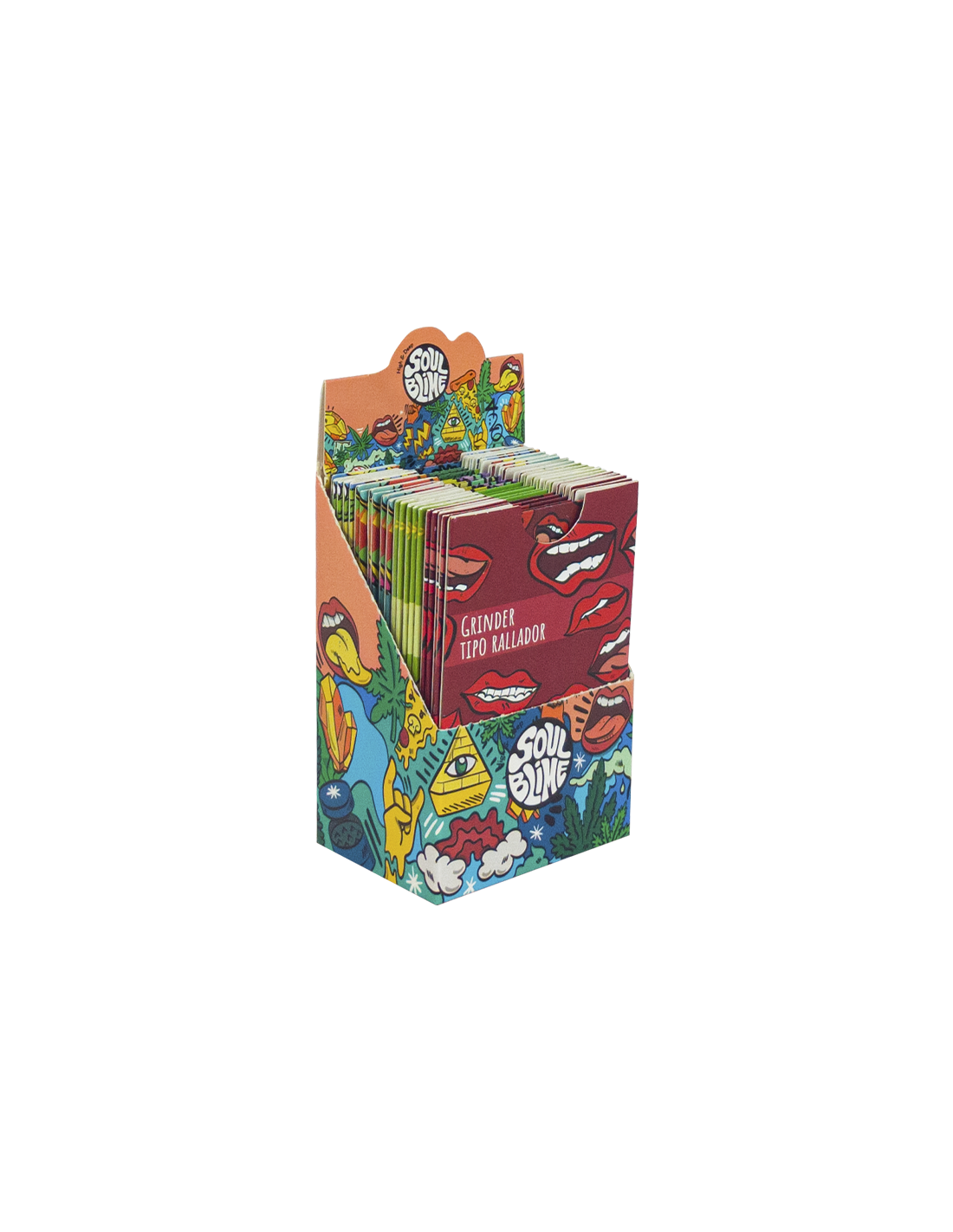 TABAQUERIA & SMOKE SOULBLIME HEMP WRAPS FRUTAL MIX DISPLAY 24 UDS BSOU002 Display de 24 unidades de Hemp Wraps Soulblime Frutal. Cada sobre contiene 2 hojas de hemp wraps + pin de regalo. Vienen 3 sabores: uva, arandano y frutilla, con 8 unidades de cada sabor. Ver