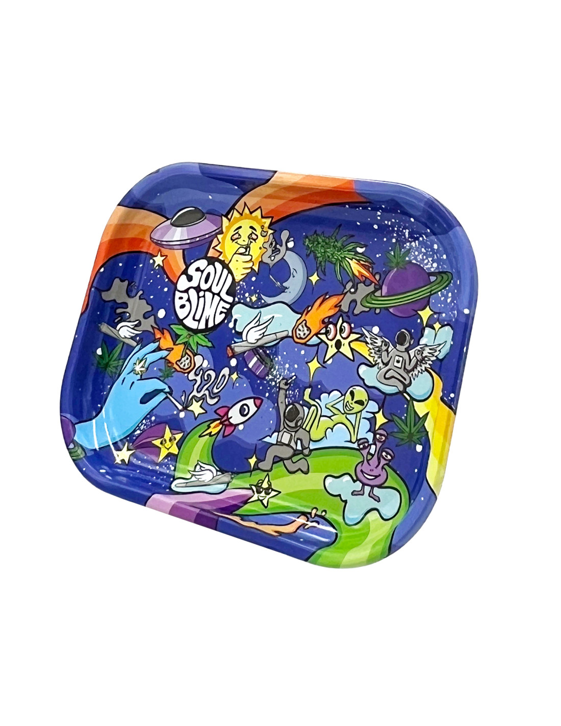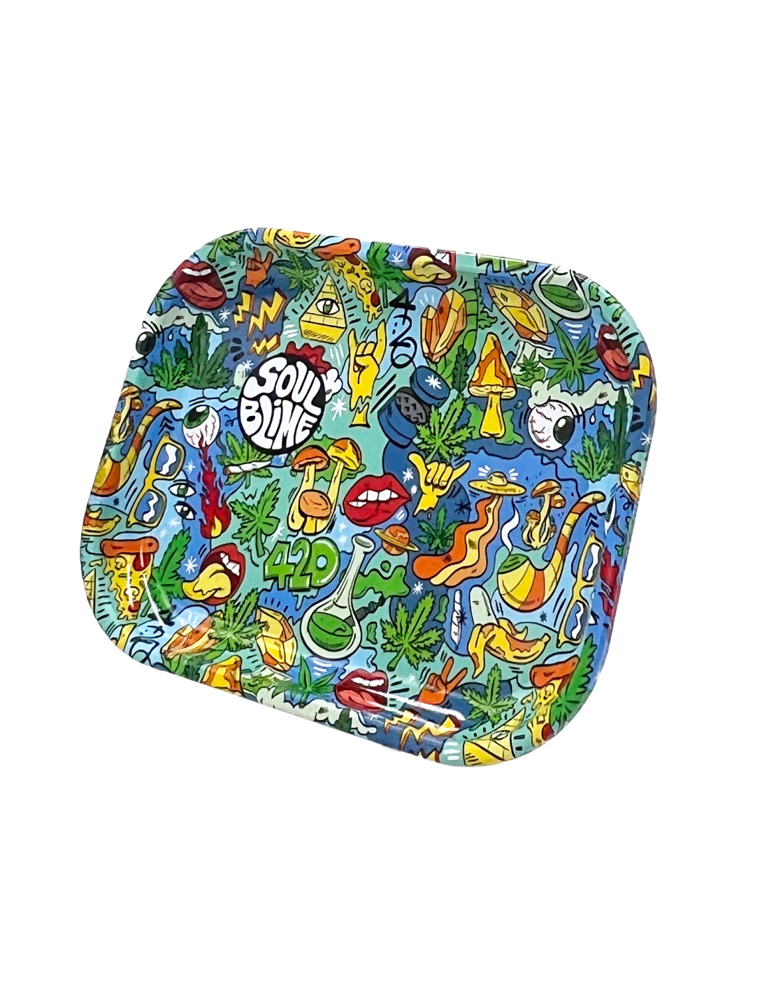 Display de 8 unidades de bandejas Soulblime. Bandejas metalicas de 18 x 14cm con motivos surtidos.